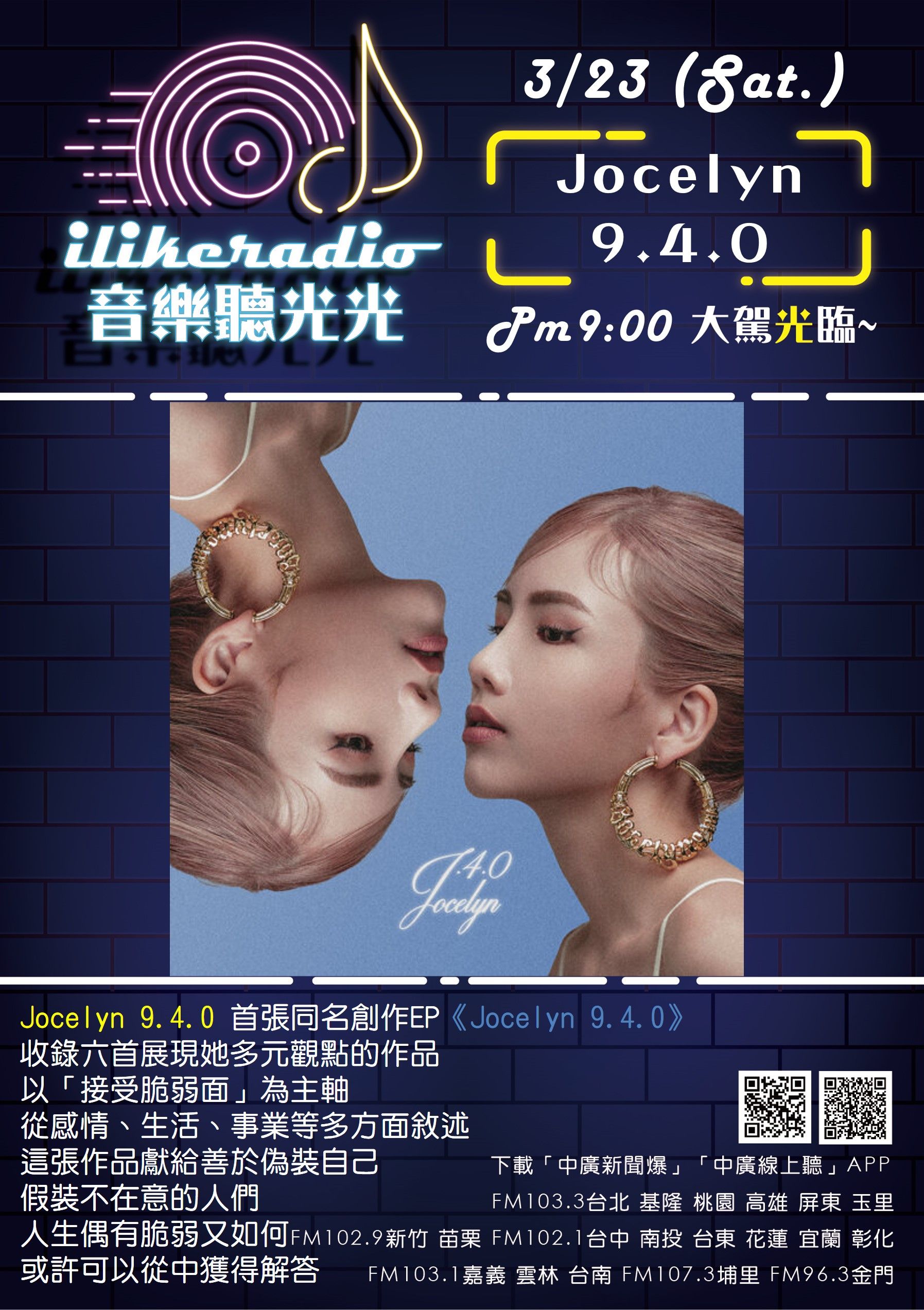 3/23 (21:00) 音樂聽光光:Jocelyn 9.4.0