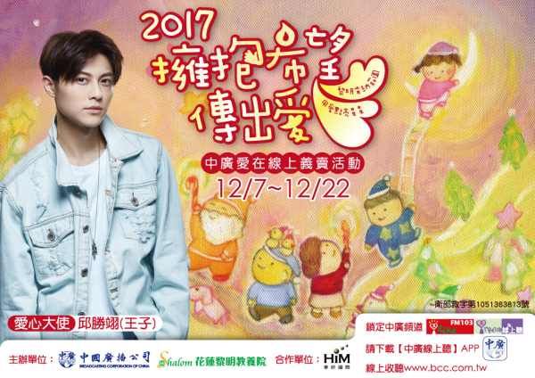 中廣「擁抱希望傳出愛」義賣活動 (http://www.nmm.com.tw/events/20171205/) 12/7開始起跑! 中廣、邱勝翊(王子) 聖誕送愛 邀請您協助「花蓮黎明教養院」, 一起Attention「肯納兒」!