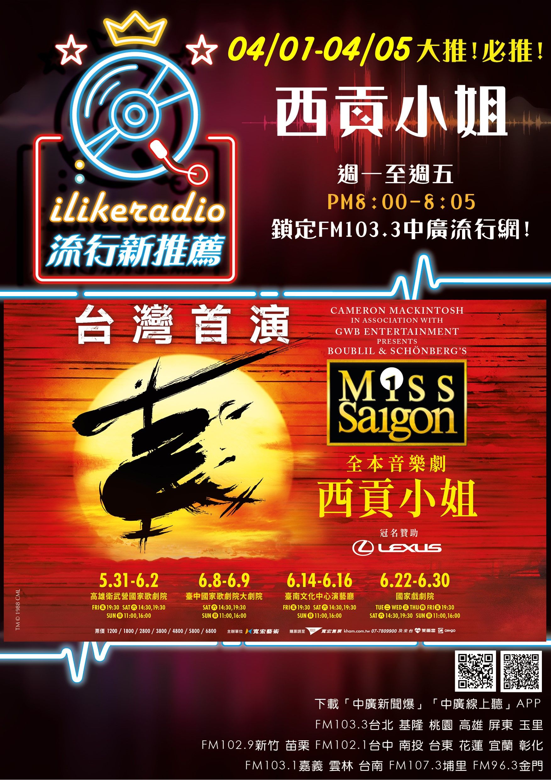 4/1-4/5 流行新推薦:全本音樂劇 西貢小姐